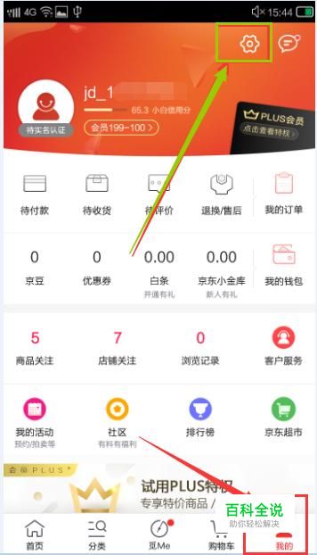 第一步,登录注册好的京东账号,点击“我的”,然后点击右上角的设置按钮。