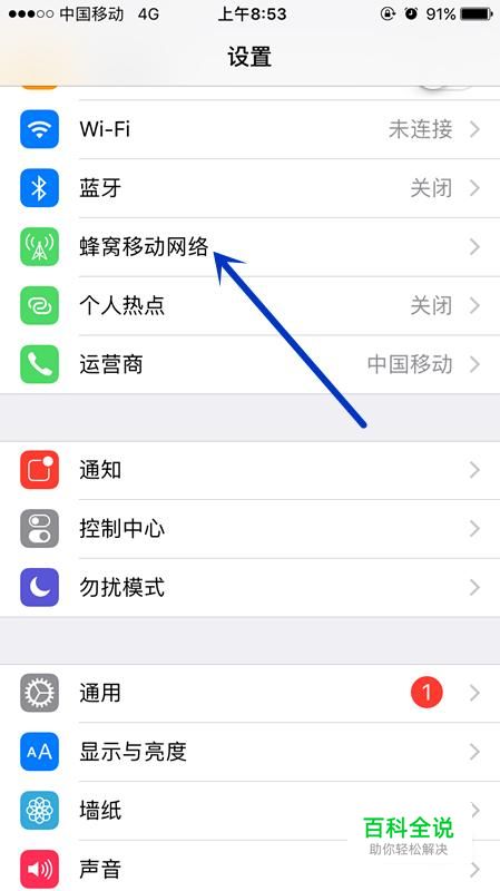 点击蜂窝移动网络。