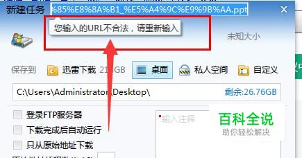 之后就会弹出一个迅雷下载的链接。但是,链接中出现了“URL不合法,重新输入的字样”