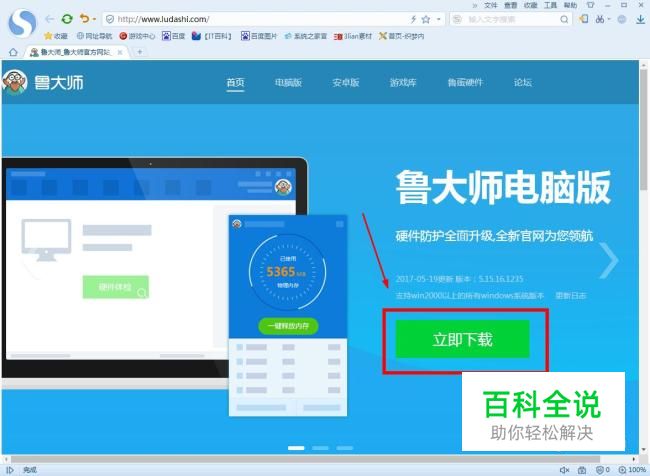 先使用浏览器下载鲁大师,直接在搜索引擎上搜索鲁大师官网。