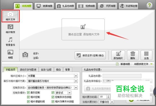 运行制作视频的软件,这里以数码大师为例。点击中间方框,添加相片文件。