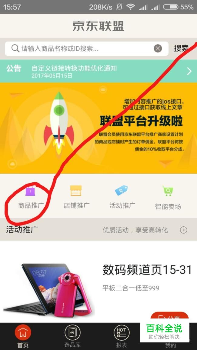 下载APP之后登录之后,移动到首页,点击商品推广,输入你想要推广的商品。