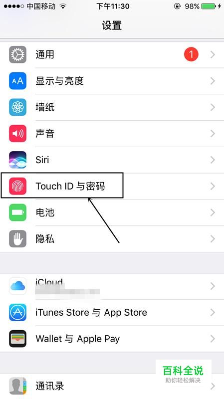 打开手机设置,点击touch ID与密码。
