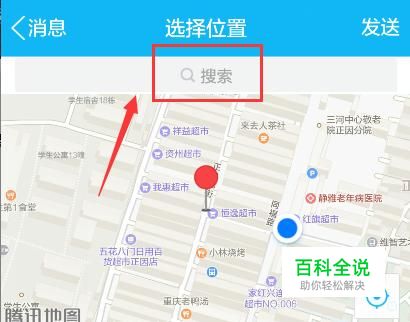 除了这些位置,我们还可以任意发送想要的位置给好友,点击上方的搜索框。