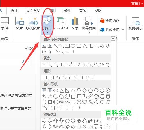 选择“形状”,下面的方框中我们可以看到很多箭头类的形状,选中即可进行描绘。