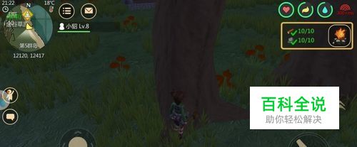 要先知道篝火是由是个木棍和是个煤炭合成的,所以要先去找他们,找到一棵树,点击背包的木斧头,用木斧头砍树。