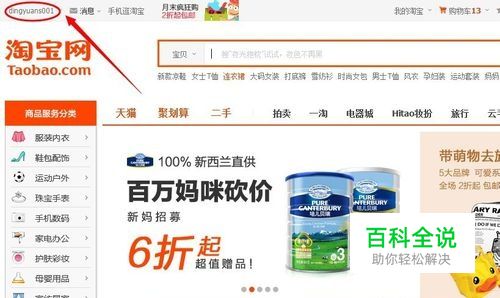 打开淘宝网,用自己的淘宝账号登陆淘宝网