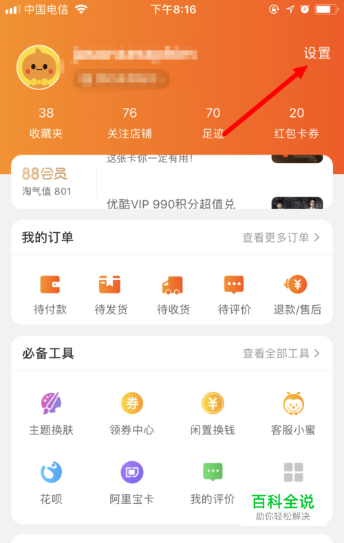 进入自己的页面后,点击右上角的 设置 。