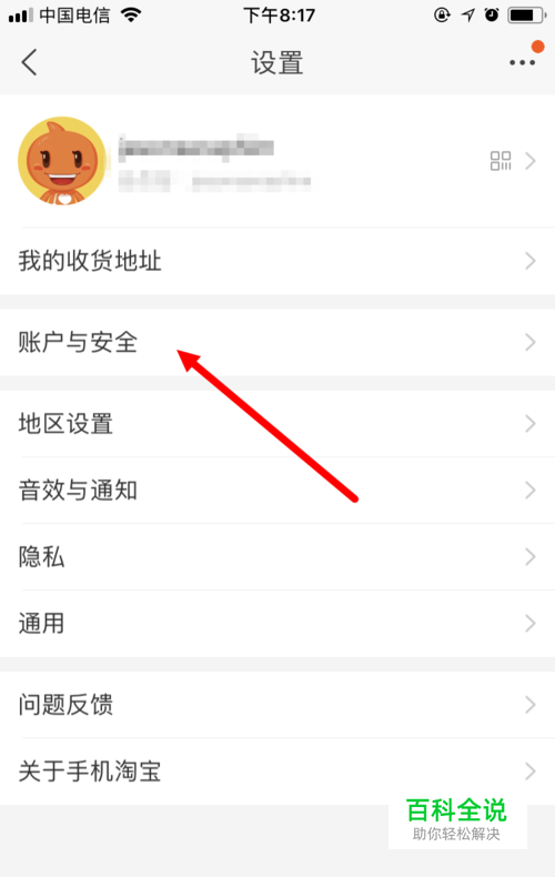 在 设置 页面,点击 账户与安全 。