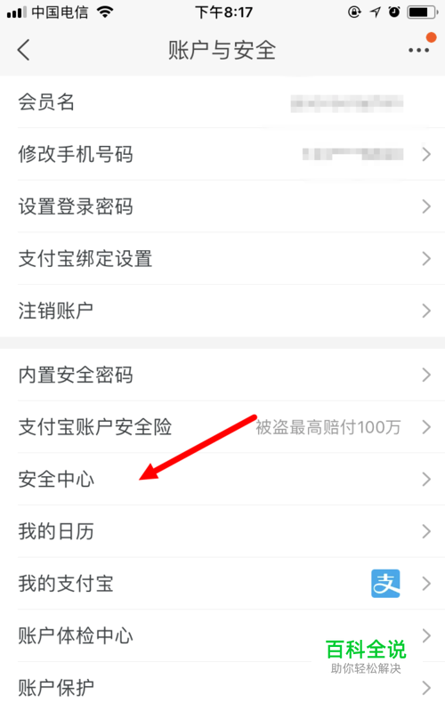 再在 账户与安全 页面,点击 安全中心 。