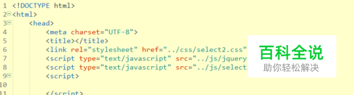 第一步,创建静态页面select.html,引入select2相关的css和js文件,并引入jQuery核心js,如下图所示:
