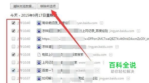 如果想删除某条或某几条历史记录,那么可以勾选,然后点击上面的“移除所选项”进行删除。
