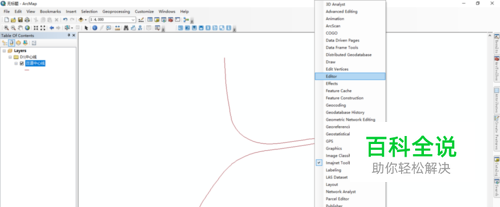 删除完成后可看到效果图,选择Editor工具下拉菜单的Save Edites保存编辑的线要素。