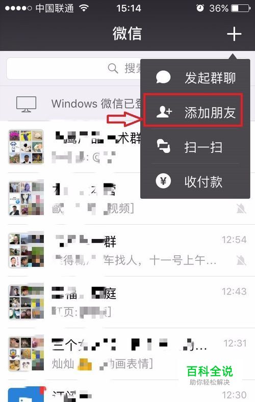 打开微信主界面,点击右上角【+】 图标,在弹出的下拉框里面选择【添加朋友】