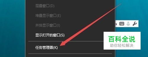 在Windows10桌面,右键点击任务栏空白位置,在弹出菜单中选择“任务管理器”菜单项。