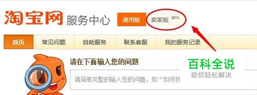 点击链接后,网页显示【淘宝网服务中心】,点击页面上方的【卖家版】切换到卖家功能区。