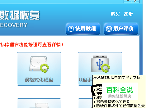 开始进入恢复进程啦,选择主界面的“U盘手机相机卡恢复”,放鼠标在该功能的旁边可以看到这个功能可以针对WD移动硬盘的数据进行恢复的。