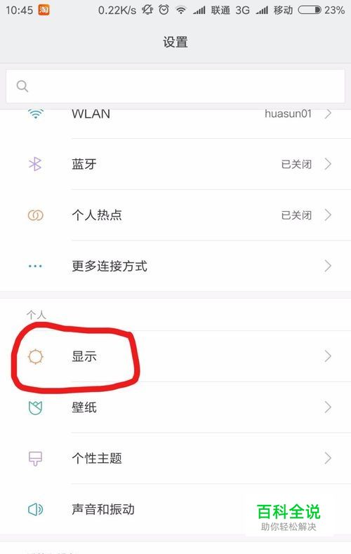 然后在设置界面当中,找到“显示”一栏