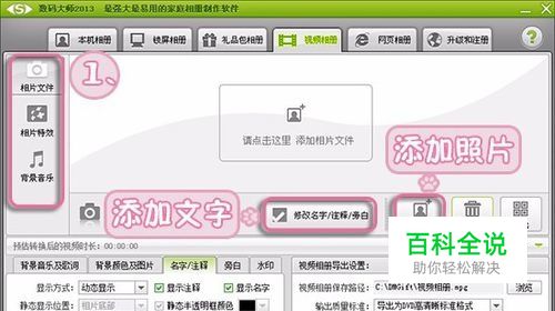 第三步:加音乐 点击“添加媒体文件”就能配上音乐,上次做了个毕业纪念的音乐相册,加了首《不说再见》,气氛渲染得蛮好。 想加歌词的话,点击“插入歌词”就可以导入歌词文件。