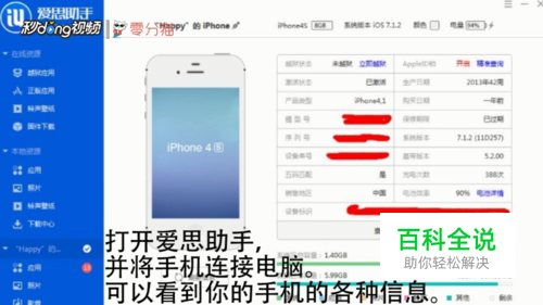 下载安装好爱思助手,打开软件,并将手机连接电脑,可以看到手机的各种信息。