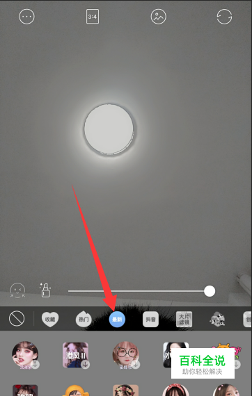 首先我们需要打开激萌,然后在激萌首页找到视频,在拍摄视频页面,我们点击最左方贴纸