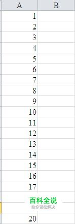 选中你要生成连续系列的单元格组,这里以生成如下图所示的一列20个连续数字为案例。