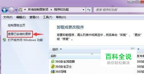 1、依次打开电脑的控制面板—程序和功能—查看已安装的更新。