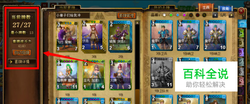 套牌战斗力与自动组牌: 自动组牌会将玩家所拥有的最好卡牌,组出一套最高战斗力的套牌! 注意:战斗力是一个衡量卡牌的标准,但有些时候我们要学会变通。 例如:有些章节地图中的关卡,电脑召唤的卡牌物理防御高的离谱的野兽,可适当在牌组中添置一些法师精灵,在行军中,要注意站位,物抗骑兵在前,弓手法师在后。