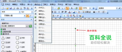 选择直线--格式--行为。如图