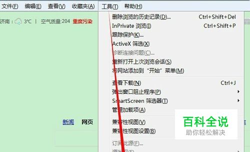 首先是打开IE浏览器,点击菜单栏的工具,在其下拉列表中选择Internet选项