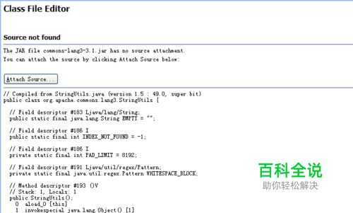 新建以下代码,然后按住ctrl键左击StringUtils类,来到代码未找到页面。
