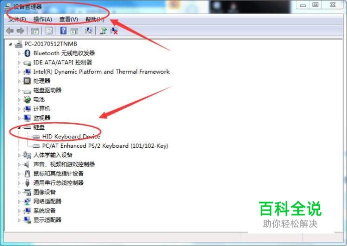 键盘 然后在【设备管理器】窗口中,找到【键盘】,如下图所示: