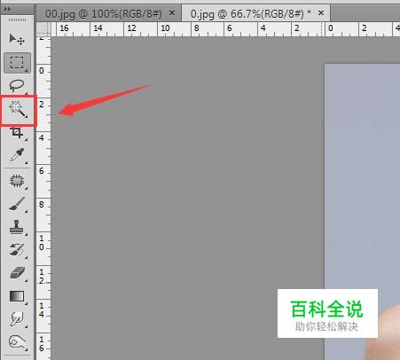 使用ps将我们的图片打开,然后在工具箱内找到魔术棒工具,如图所示: