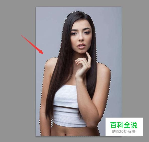 选择魔术棒工具我们点击人物的背景,然后再按下Ctrl+shift+I键得到人物的选区,如图所示: