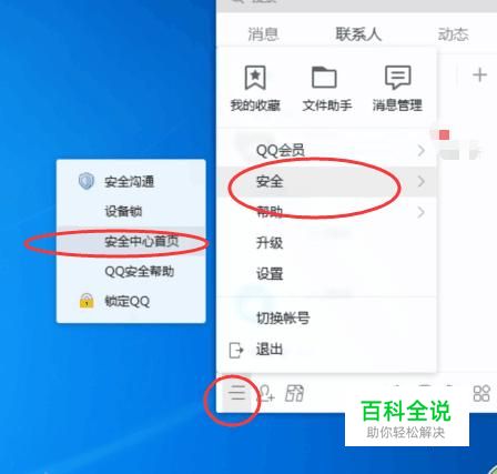 安全中心首页 登陆QQ,点击左下角图标---安全-----安全中心首页,如下图所示: