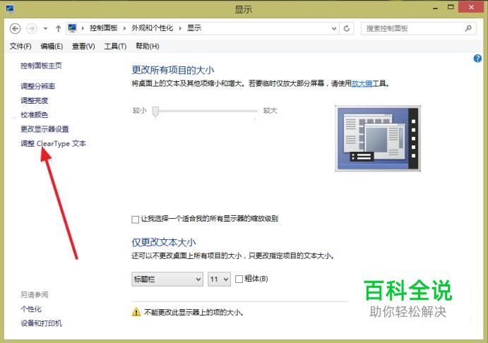 点击调整clear type文本选项。如图。