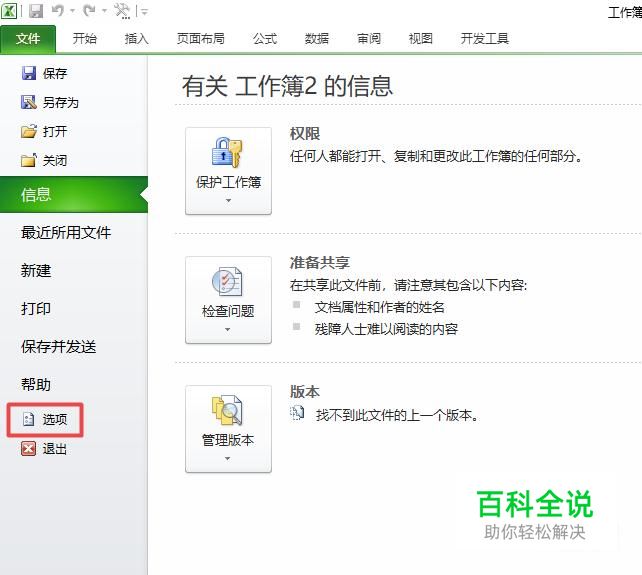 弹出的界面,我们点击选项,如图所示;