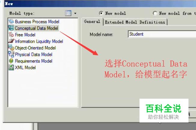 接下来在弹出的New界面中选择Conceptual Data Model选项,接着给模型起名字,如下图所示