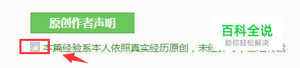 第六步:写完注意事项以后,在下面的原创作者说明下面,点击画上对号,表明是我们自己的原创经验,然后点击发布经验即可