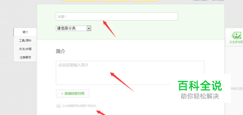 第三步:我们打开发布经验高级编辑器以后,点击输入我们要写的原创经验的标题,再写上简介,以及图片,简介要大于50字