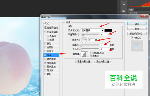 接着选择图层1的副本添加图层样式,调整一下光泽和渐变叠加,如图所示