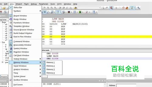 然后在主界面上选择view—memory windows。