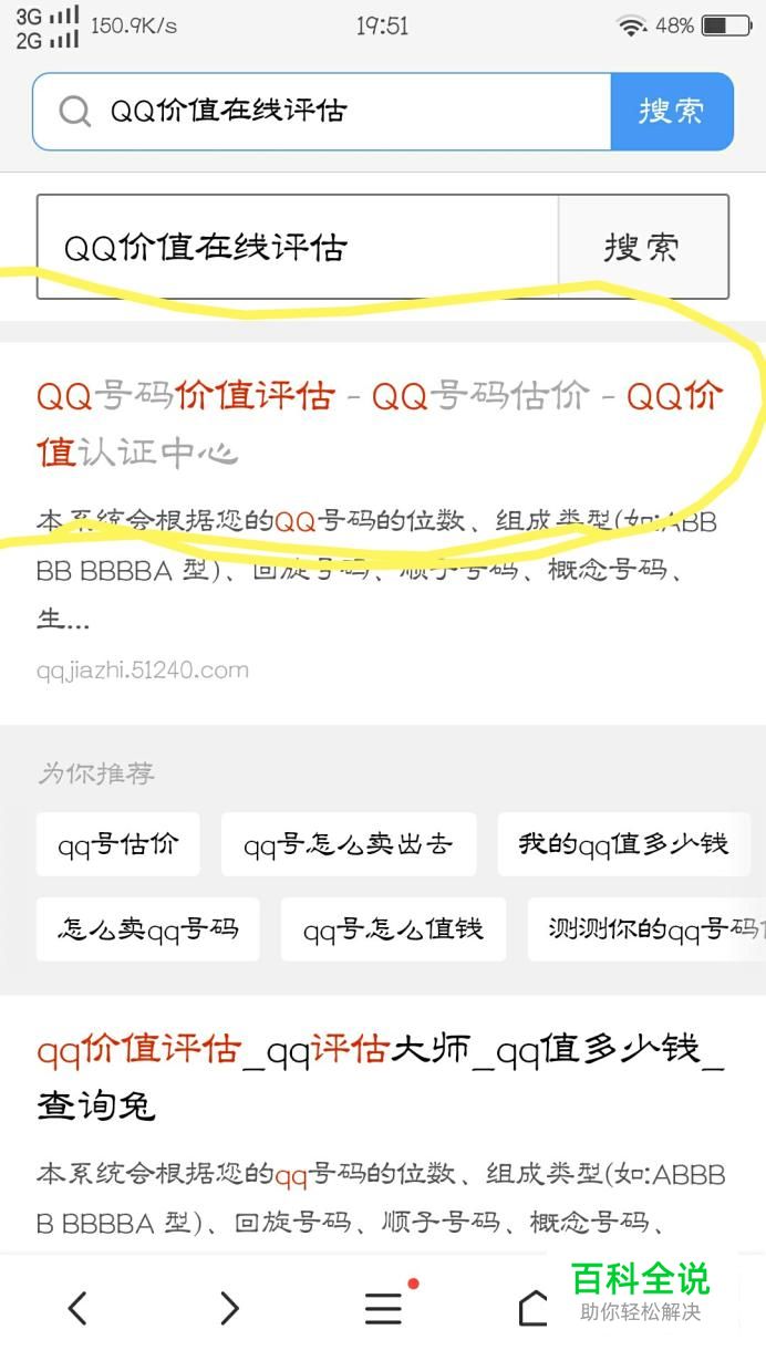 首先,大家打开手机浏览器,并点击打开,搜索“QQ在线价值评估”