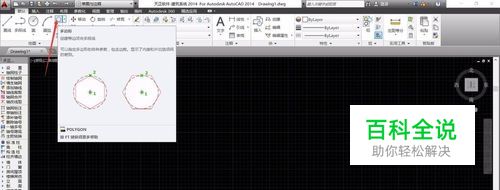 首先,我们开启AutoCad软件,进入到AutoCad的绘图页面,并且选择上方的“多边形”命令,在绘图区域进行多边形的绘制。