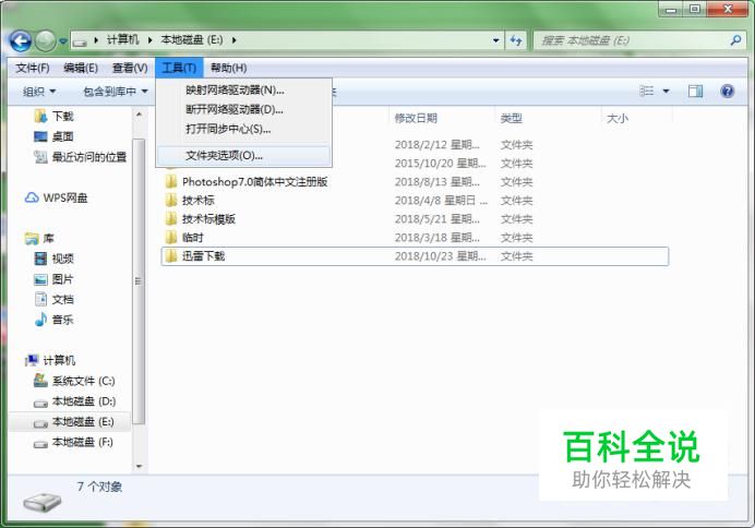 首先,选择“计算机(我的电脑或此电脑)”点击打开,我们可以看到菜单栏,点击菜单栏里面的工具,选择“文件夹选项”进入。