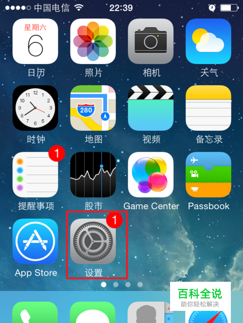 在iPhone5S主界面,找到【设置】,如图所示