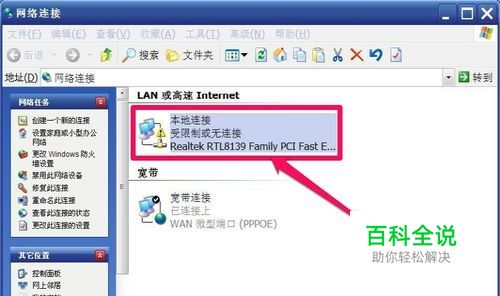 2,如果右下角没有“本地连接”图标,也可以在桌面上点击“网上邻居”右键菜单中的“属性”,进入网络连接,选择“本地连接”。