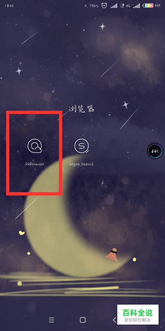 打开手机后,找到QQ浏览器的图标,点击图标,进入浏览器。