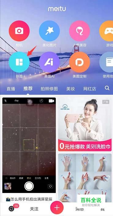 打开美图秀秀后在首页里就会看到一个拼图的选项,点击一下。