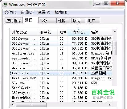按住Ctrl+Alt+Del(Delete)召唤出任务管理器,在上方选择进程这一项,(如图)在列表中找到映像名称为kminisite,描述为热点新闻这一行。右击它选择“打开文件位置”。